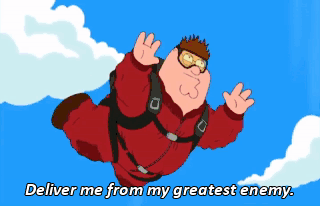 Deliver me from my greatest enemy. His name is Peter. More specifically, Peter's Shyness In Public. O, Great Spirit, why do I hold myself back in such a... Oh, fuck! The cock-sucking ground. (GROANS) Damn it.