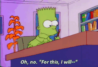 Oh, no. "For this, I will--" Ohh. "Require--" Ohh. Oh, man. "'My Confession' by Bart Simpson.