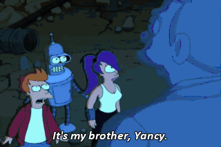It's my brother, Yancy. And there, in his lapel-- my seven-leaf clover! I knew he stole it! Hold the phone. If that's Yancy, why does the inscription say "Philip J. Fry"?