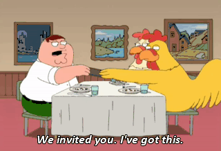 We invited you. I've got this. Look, just let go of the check. You let go of the check.