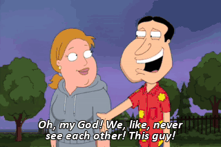 Oh, my God! We, like, never see each other! This guy!