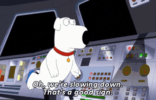 Oh, we're slowing down. That's a good sign. You know what's not slowing down? Breaking Bad. Haven't seen anything like it since The Wire. God, he never shuts up about those shows.