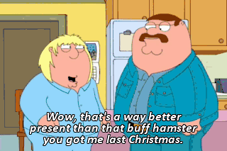 Wow, that's a way better present than that buff hamster you got me last Christmas.
