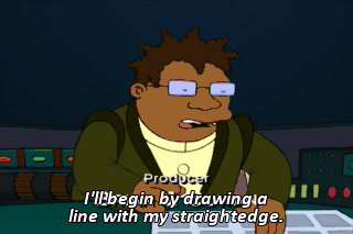 I'll begin by drawing a line with my straightedge. Sweet lamprey of Santa Fe! My edge has been bent! My javelin too! It's ruined! Now we'll never beat Jupiter State.