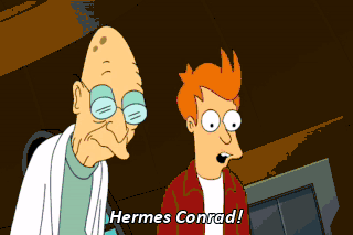 Hermes Conrad! (CRYING) Man! I'm dripping with placenta. Good thing it's Casual Friday.