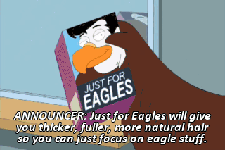 ANNOUNCER: Just for Eagles will give you thicker, fuller, more natural hair so you can just focus on eagle stuff. You're an excellent architect.