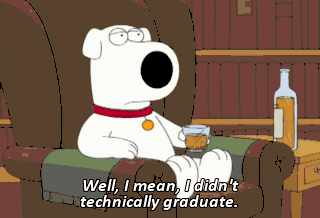 Well, I mean, I didn't technically graduate. (GASPING) You're a college dropout? Brian, The New Yorker does not employ your kind. You, sir, are fired! (DOOR SLAMMING) MAN: No dogs allowed.