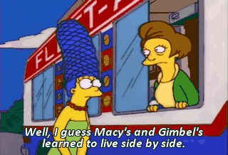 Well, I guess Macy's and Gimbel's learned to live side by side. Gimbel's is gone, Marge. Long gone. You're Gimbel's.