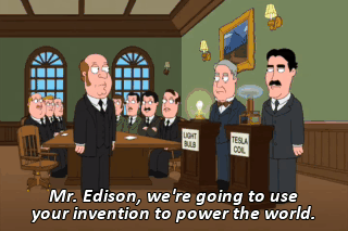 Mr. Edison, we're going to use your invention to power the world. And, Mr. Tesla, we're going to use yours in the background of Frankenstein movies. I wanted that one.
