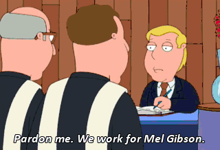 Pardon me. We work for Mel Gibson.