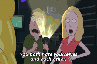 You both hate yourselves and each other. And the idea that it has anything to do with Rick is laughable.