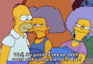 Well, it's good to see ya. Well, gotta pick up my old man. Bye ! So insincere. I don't know how she puts up with him.