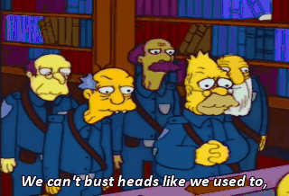 We can't bust heads like we used to, but we have our ways. One trick is to tell them stories that don't go anywhere, like the time I caught the ferry over to Shelbyville.