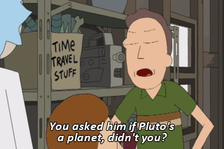 Apparently, nothing. You asked him if Pluto's a planet, didn't you?