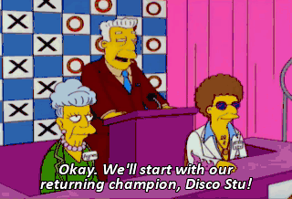 Disco Stu's gonna groove up some dough playing tic-tac-toe.
