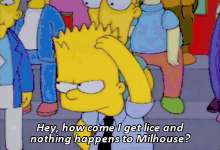 Hey, how come I get lice and nothing happens to Milhouse? So cold. So very, very cold.