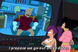 I propose we go out on 10 dates. How about zero? Nine. Zero. Seven. Zero. Eight?