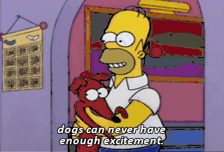 dogs can never have enough excitement. Look. Whee! Whee! Whee, whee! All right, all right. I won't take the dog. Come here. Aw.