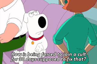 How is being forced to join a cult for 30 days supposed to fix that?