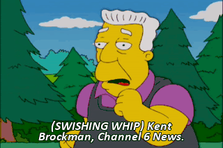 (SWISHING WHIP) Kent Brockman, Channel 6 News. I gorge on kettle corn during the sports and weather. We know. Your side fat's starting to spill over to Channel 5 and 7.
