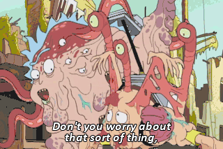 Don't you worry about that sort of thing, Cronenberg Morty. Let's go make ourselves at home, huh? Did you get any ofthat? It's a good-a show!