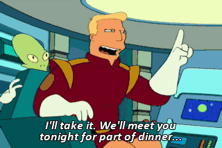I'll take it. We'll meet you tonight for part of dinner... and the first half of a movie.