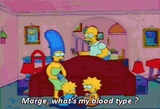 Marge, what's my blood type ? A-positive. Aw, nuts. Extremely rare blood, and I don't have it. You know his blood type ? How romantic. A mother knows everything about her family.