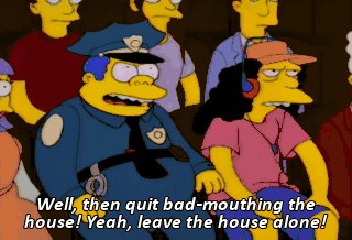 Well, then quit bad-mouthing the house! Yeah, leave the house alone! Oh, geez! It's what's inside the house that's disgraceful.