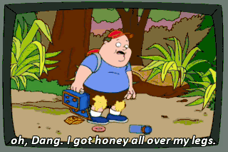 oh, Dang. I got honey all over my legs.