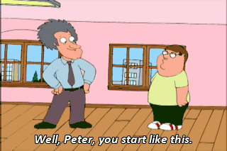 Well, Peter, you start like this. Like this? Yeah. Now add a little turn and do a buck and wing. Come on, Mr. Fargas, do the whole darn thing. Jeez, Mr. Fargas, what happened to you?