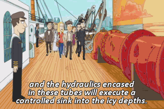 and the hydraulics encased in these tubes will execute a controlled sink into the icy depths.