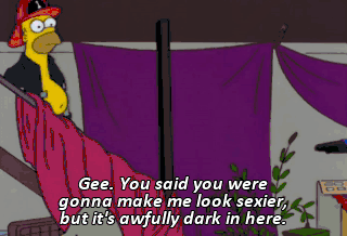 Gee. You said you were gonna make me look sexier, but it's awfully dark in here. Light is not your friend. All right, let's do this thing. It's time to get Homer-erotic!