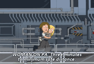 WOMAN ON PA: Three minutes to minimum safe distance.