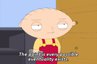 The point is every possible eventuality exists. And that's where you got the pig, in a parallel universe. Prepare yourself, Brian, and I'll show you. (BEEPING) (WHIRRING)