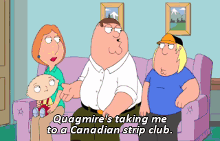 Quagmire's taking me to a Canadian strip club.