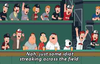 Nah, just some idiot streaking across the field. Ha-ha. You're all looking at my penis. You didn't plan on it, but it's happening.