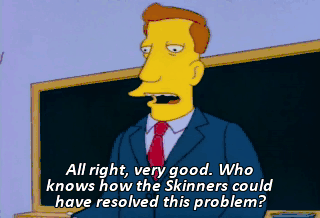 All right, very good. Who knows how the Skinners could have resolved this problem?