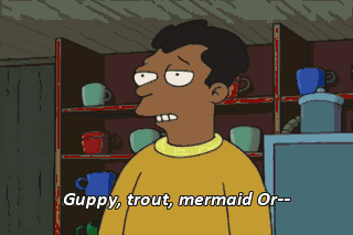 Guppy, trout, mermaid Or-- Whale, please.
