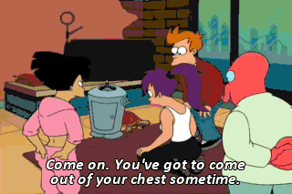 Come on. You've got to come out of your chest sometime. Would you do it for a Bender snack? Aha! Gotcha! Let me go! I don't even want the stupid beer! Yes! You tried to trick me into comin' out of my chest!