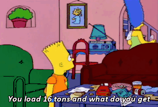 You load 16 tons and what do you get Another day older and deeper in debt Amen, Ernie.