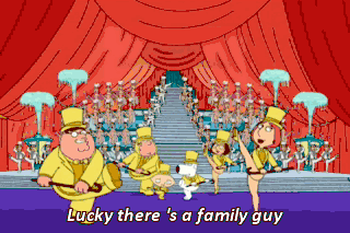 Lucky there 's a family guy Lucky there 's a man who Positively can do All the things that make us Laugh and cry He 's a family guy