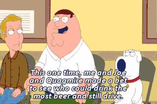 This one time, me and Joe and Quagmire made a bet to see who could drink the most beer and still drive. And you know that water slide in South Attleboro? (CHILDREN LAUGHING) Yeah! Water slide! Summer fun!