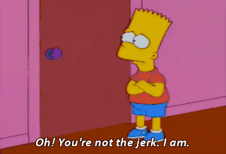 Oh! You're not the jerk. I am. Forgive me? Oh, like you're Miss Perfect! Mom, Lisa's making me feel bad! Stop it, Lisa! That shut her up.