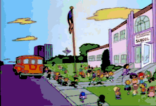 We come from Springfield and we sell swampland You there. No chewing gum on school grounds. In the trash can with it. Principal Skinner,