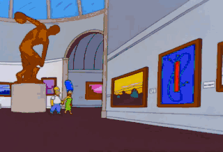 It's so exciting to do something cultural together. Matt Groening? What's he doing in a museum? He can barely draw! Ow! Oh, no! I'm being erased! Move it, bub! We got an installation to "installate."