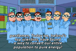 gentlemen, Today we, Ireland's top scientists, have found a way to convert our entire population to pure energy!