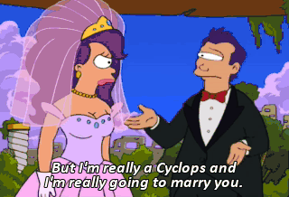 But I'm really a Cyclops and I'm really going to marry you. Oh, yeah? Then what about this? Uh... Uh... this is a bit awkward. Who's a-she? Who's she? Who are they? Go back to the castle, Sandy.