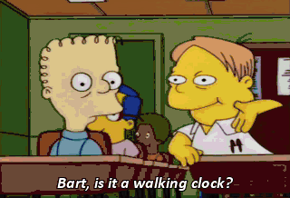 Bart, is it a walking clock? What? No, it's my dog. Oh, he is a gem! Here, boy. Would you like these cookies Martin made for me? My raisin roundies!