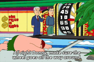 All right Donny, make sure the wheel goes all the way around. Oh--Oh, no. Head... hunters. Ahh! Am I fired?
