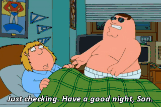 Just checking. Have a good night, Son. PETER: You still awake, honey? STEWIE: What the deuce?